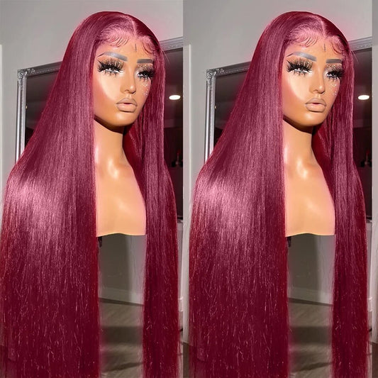 Burgundy Colored Lace Frontal Human Hair Wigs Pre Pucked