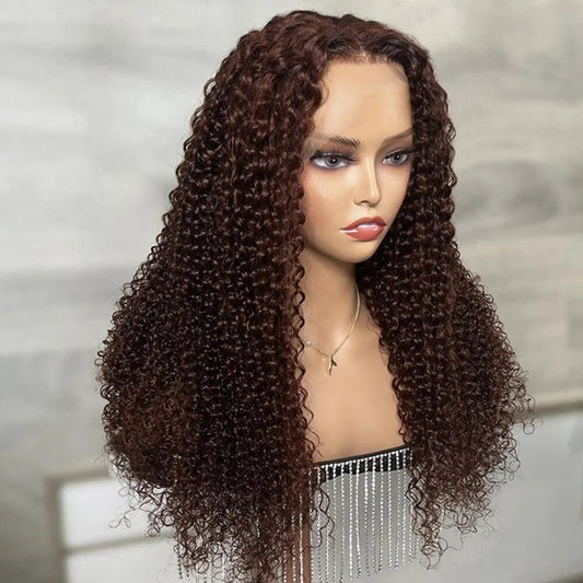 Dark Brown Jerry Curly Human Hair Wigs Lace Frontal Indian Closure Pre-Plucked